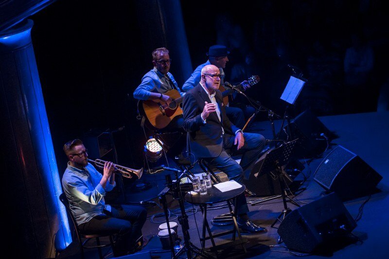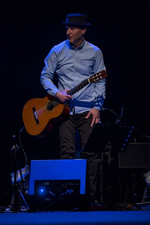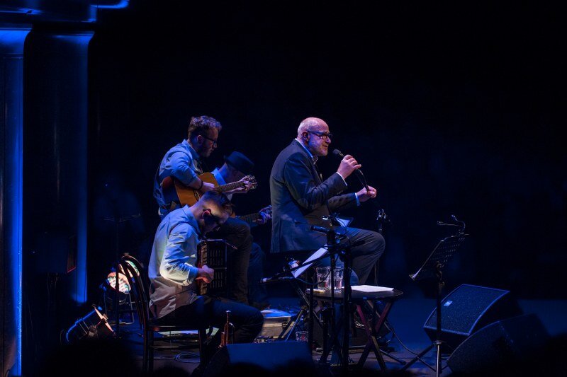 Piotr Machalica z zespołem: Krzysztof Niedźwiecki, Michał Walczak, Paweł Surman (gitary, instrumenty perkusyjne, trąbka, akordeon, przeszkadzajki)