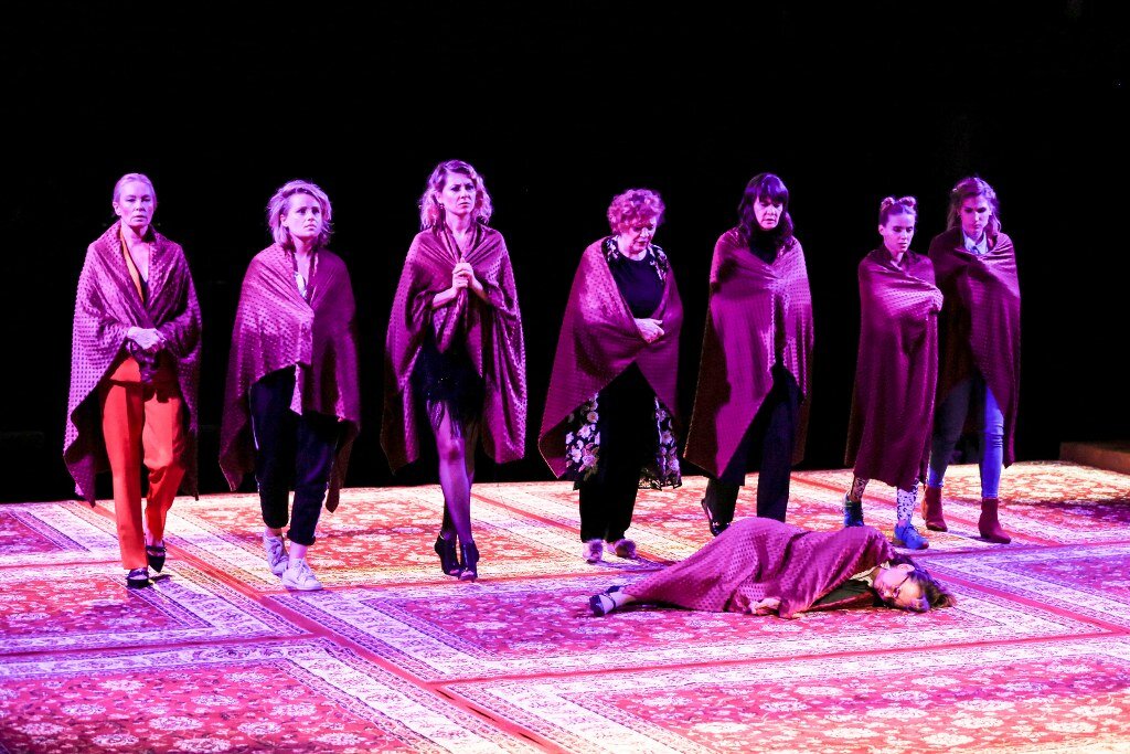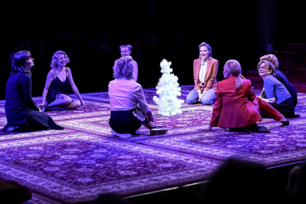 Odcięty od świata dom na pustkowiu. Osiem kobiet – matka, żona, szwagierka, siostra, dwie córki, dwie pokojówki – podejrzanych jest o zabójstwo pana domu. Każda ma motyw, by zabić, każda ma alibi. Kobiety, próbując rozwiązać zagadkę tajemniczej śmierci, zaczynają prowadzić pełną zaskakujących zwrotów akcji, błyskotliwych ripost i kąśliwych uwag grę. Jakie emocje wyzwoli śmierć pana domu? Jakie sekrety zdemaskuje? 8 kobiet to spektakl, który łączy elementy powieści kryminalnej w stylu Agaty Christie, z komedią i melodramatem. Jest także, a może przede wszystkim, opowieścią o różnych typach, wymiarach i tajemnicach kobiecości. Osiem kobiet i osiem wspaniałych aktorek na scenie.