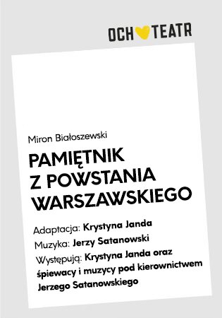 Krystyna Janda dokonując adaptacji "Pamiętnika z Powstania Warszawskiego" Mirona Białoszewskiego, stworzyła nową przestrzeń odbierania tego dzieła. Spektakl w jej adaptacji, z muzyką skomponowaną przez Jerzego Satanowskiego, to wejście na zaskakująca ścieżkę dźwiękową „słyszalną” już w "Pamiętniku...". Ta interpretacja pozwala, poprzez słuchanie, mówienie i śpiew, wyrazić to, czego słowo pisane nie odda.