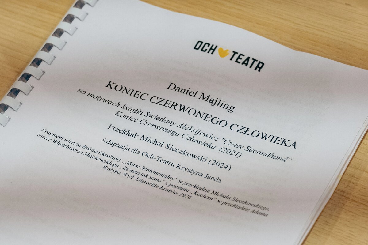 KONIEC CZERWONEGO CZŁOWIEKA to adaptacja teatralna autorstwa Daniela Majlinga, oparta na głośnej książce Czasy secondhandu Swietłany Aleksijewicz , noblistki, wybitnej pisarki białoruskiej, krytycznej w stosunku do rządów Łukaszenki.